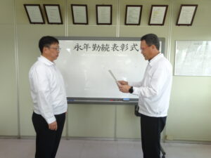 永年勤続表彰式が行われました 2025年9月20日 インフォメーション 9月8日永年勤続表彰式が行われ感謝状と報奨金が授与されました。 今回は20年表彰2名、15年表彰2名、合わせて4名の方が表彰されました。 代表して挨拶をしてくれた従業員からは、今後もさらなる会社の発展を目指し みんなで頑張っていきたいと語ってくれました。 Share: Older Post 永年勤続表彰式が行われました
