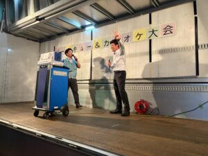 恒例のバーベキュー&カラオケ大会を開催しました! 2025年10月20日 インフォメーション 10月8日に会社の敷地内でバーベキュー&カラオケ大会を開催しました。 毎年7月頃の開催ですが、今年は10月の開催となり夕暮れのスタートとなりました。 お肉や野菜も美味しくて、各テーブルごとに笑い声が絶えない楽しいひとときでした。 部署を超えて交流できる貴重な機会。中々話せない人とも話せて、新しい発見がいっぱいありました! Share: Older Post 永年勤続表彰式が行われました