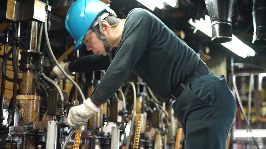 私は10年以上前に入社しました。今では役職もいただいて、この年齢で部下のマネジメントもしています。部下の育成は難しいですね。自分が若いころ、何を考えていたか思い出せませんよ。でも仕事場では、部下ともどんなことでも言い合える良い関係が築けています。うちの会社は、いい人が多いところが自慢です。そうでなければとっくに辞めていますよ。熱いし。でも、辞めずに今日まで来ましたね。なぜでしょうね。人が良いし、雰囲気は悪くないです。社長や役員も身近に感じます。いい意味で中小企業の家族的な雰囲気が漂っています。それにモノづくりは面白いですよ。うちはガラスびんを作っています。手作りではなく、自動化しています。それでも毎日同じものを作ることはできないんです。何年も経験を重ねると、やっと思い通りのものができる。この達成感が仕事のやりがいですね。それから、うちで作ったガラスびんは、裏に「SI」と刻印しています。ときどき家族と夕飯の買い物の行くときに、思わずびんの裏を見てしまいます。うちは大手ではないので、流通量も少ない。だから街で見かける機会も少ないのです。でもそれがかえってプレミア感を出していて、見つけたときには嬉しくなりますよ。皆さん、ぜひ工場を見に来てください。熱いし、汚れるし、大変な職場だけど、たくさんの社員が誇りを持って働いています。私も最初は仕事ができなかった。でもここまで成長できました。丁寧に教えてくれる先輩社員がたくさんいます。それに職場の環境はどんどん良くなっています。これからもっと働きやすくなると思います。
